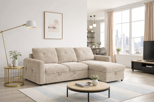 Elissa Universal Sofabed offers storage and sleeping space. Modern yet functional, with two models to choose from and four modern colours.